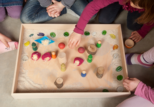 Veel gezinnen gebruiken houten figuren ook als decoratief en ritueel spelmateriaal. Op de seizoenstafel bijvoorbeeld – waar ze het verloop van het jaar, feesten of symboliek ondersteunen. Denk aan een boer in de herfst, een herder met schapen in de winter of een elfje in de lente. Zo krijgen de houten figuurtjes niet alleen een speelfunctie, maar ook een plek in het dagelijks ritme van het gezin.
