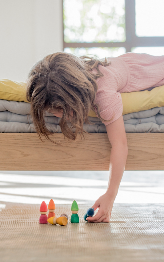 Onze houten figuren zijn prachtig te combineren met bouwmateriaal, stoffen, natuurlijke vondsten of sensorisch speelgoed. Daardoor blijven ze boeien – ook als je kind ouder wordt. Wat begint met een eenvoudige opstelling op een speelkleed, wordt al snel een rijke fantasiewereld. En met elke nieuwe toevoeging groeit het verhaal. Verzamelen mag – want elk figuurtje voegt iets unieks toe.