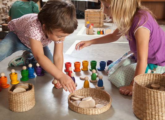 Veel gezinnen gebruiken houten figuren ook als decoratief en ritueel spelmateriaal. Op de seizoenstafel bijvoorbeeld – waar ze het verloop van het jaar, feesten of symboliek ondersteunen. Denk aan een boer in de herfst, een herder met schapen in de winter of een elfje in de lente. Zo krijgen de houten figuurtjes niet alleen een speelfunctie, maar ook een plek in het dagelijks ritme van het gezin.
