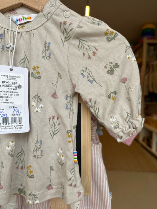 AanbiedingBlouse Joha beige met bloemen bamboe maat 50