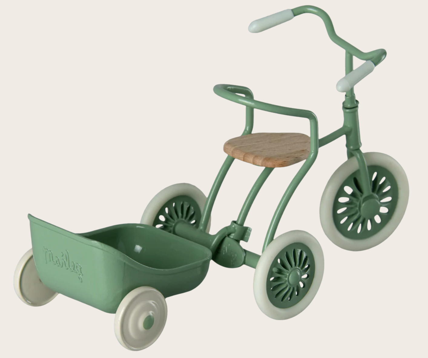 Gebruik: Aanhanger voor de Maileg Driewielerfiets om schatten mee te vervoeren