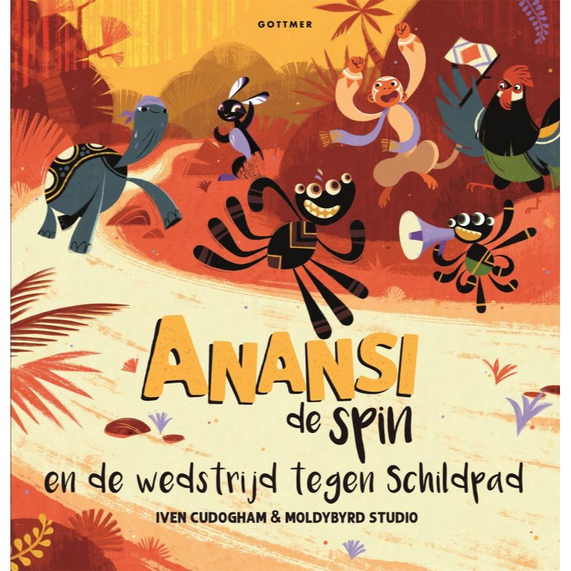 In het prentenboek 'Anansi de spin en de wedstrijd tegen Schildpad' leert de slimme spin een lesje over geduld en doorzettingsvermogen.