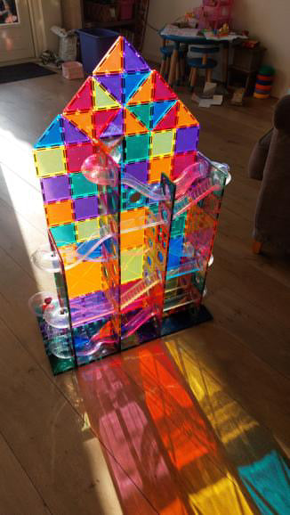 Veel speelplezier. Magneetverf op de muur gedaan. En je kan super leuke en stevigere banen maken