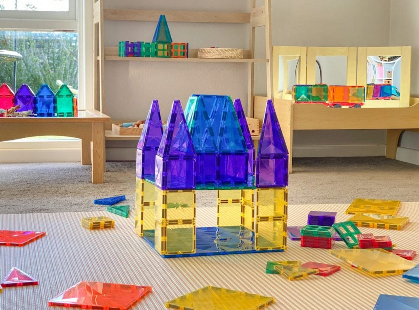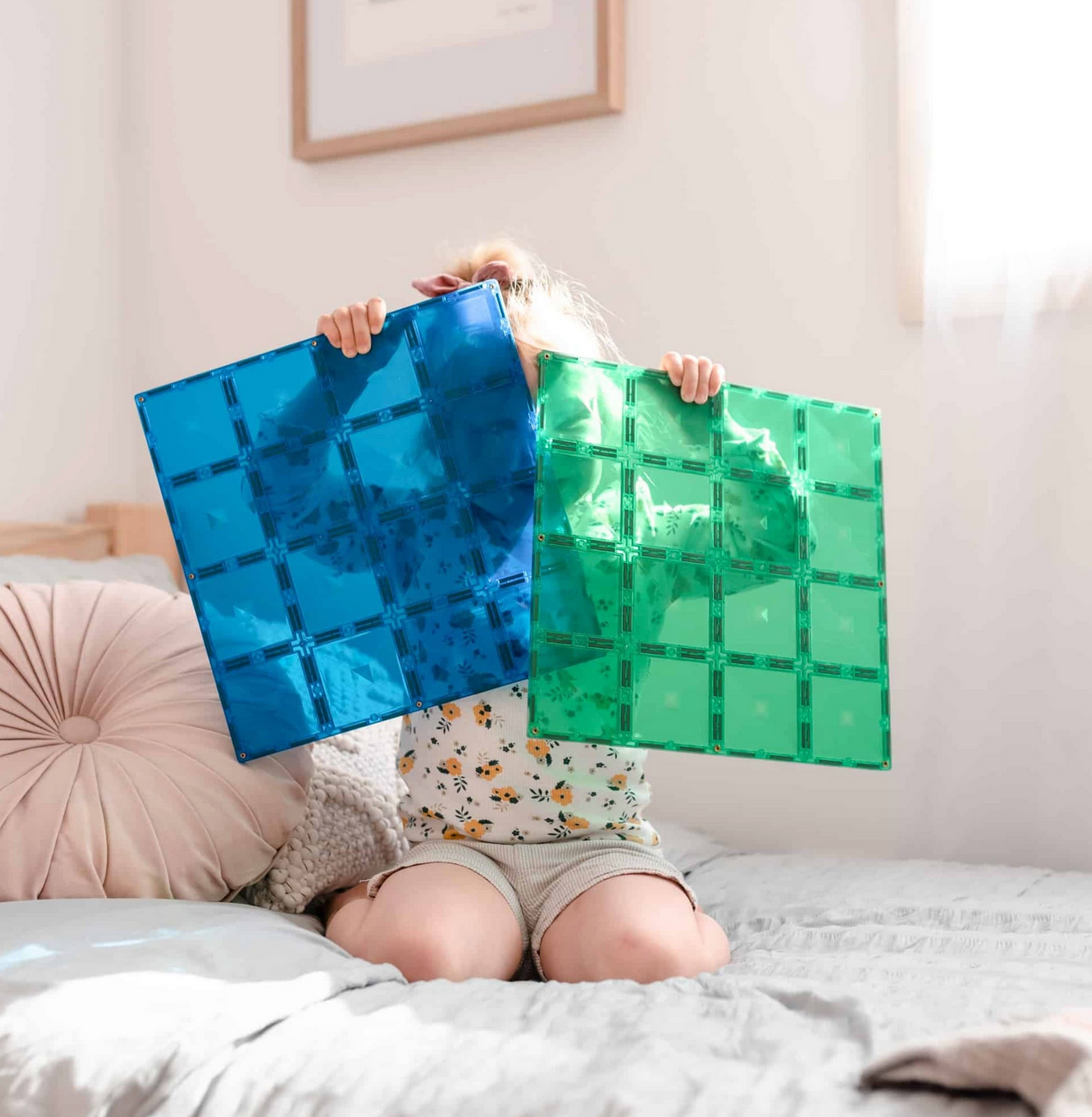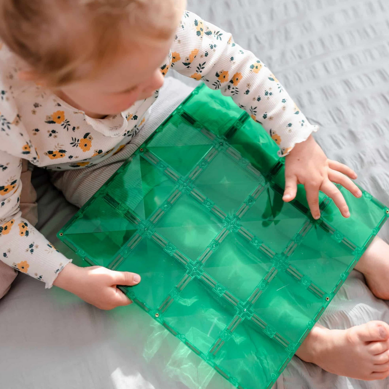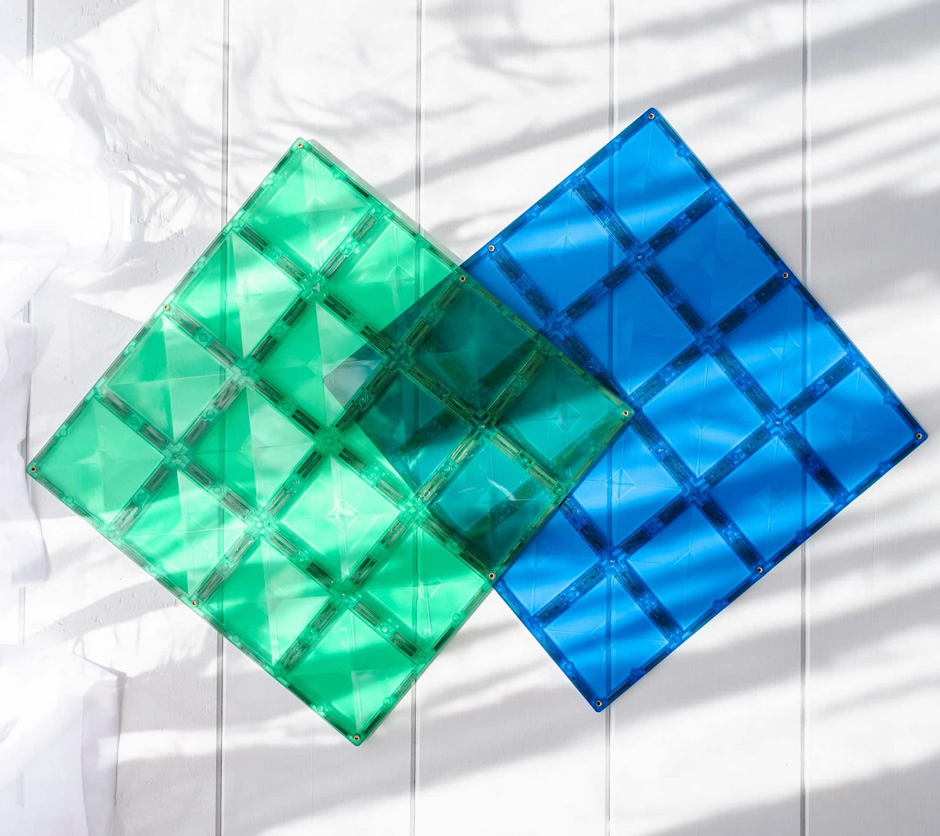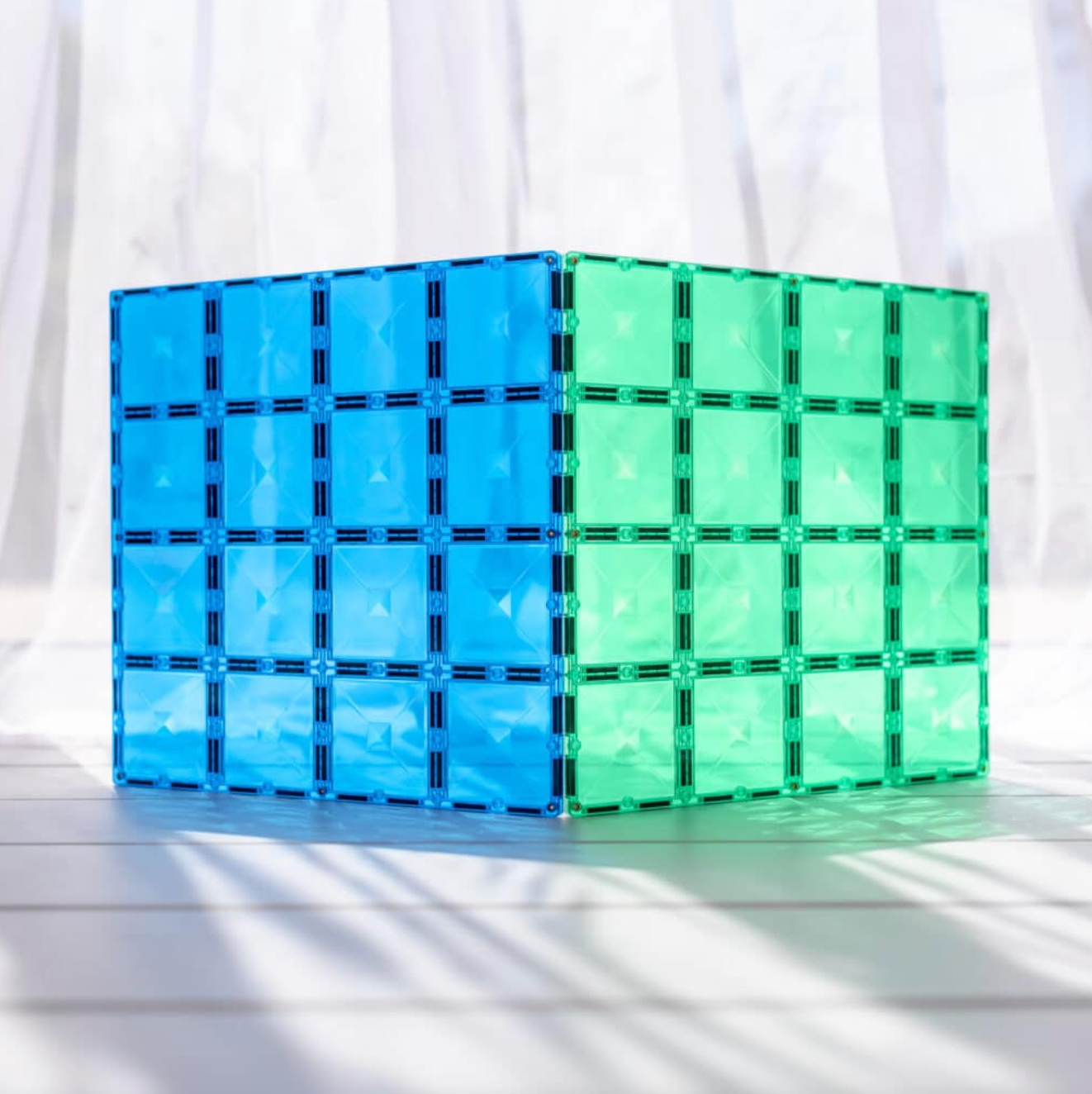 Laat je inspiratie de vrije loop en creëer stevige constructies met de Basisplaten Groen & Bblauw. Deze grote bouwplaten zijn voorzien van het kenmerkende schuine ontwerp met meerdere magnetische punten, waardoor je de volledige potentie van magnetisch tegelspel kunt benutten.