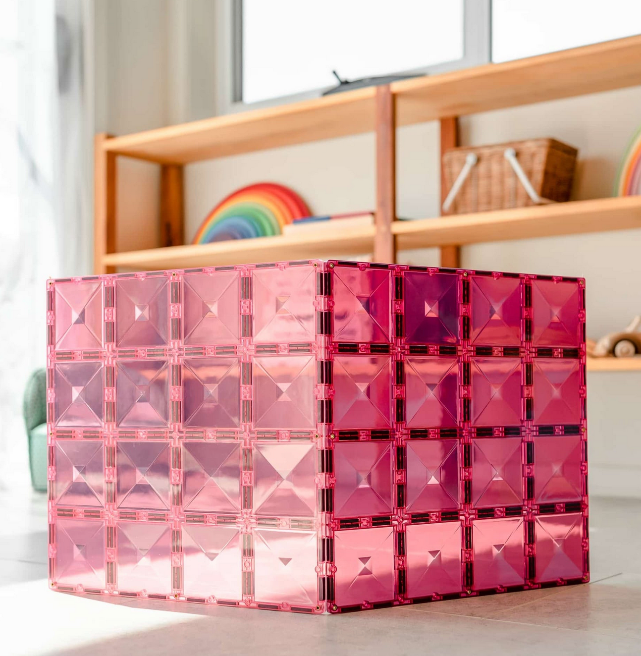 Laat je inspiratie de vrije loop en creëer robuuste constructies met de Pink & Berry Basisplaten. Deze ruime bouwplaten zijn uitgerust met het kenmerkende schuine ontwerp met meerdere magnetische punten, waardoor je de volledige potentie van het magnetische tegelspel kunt benutten.