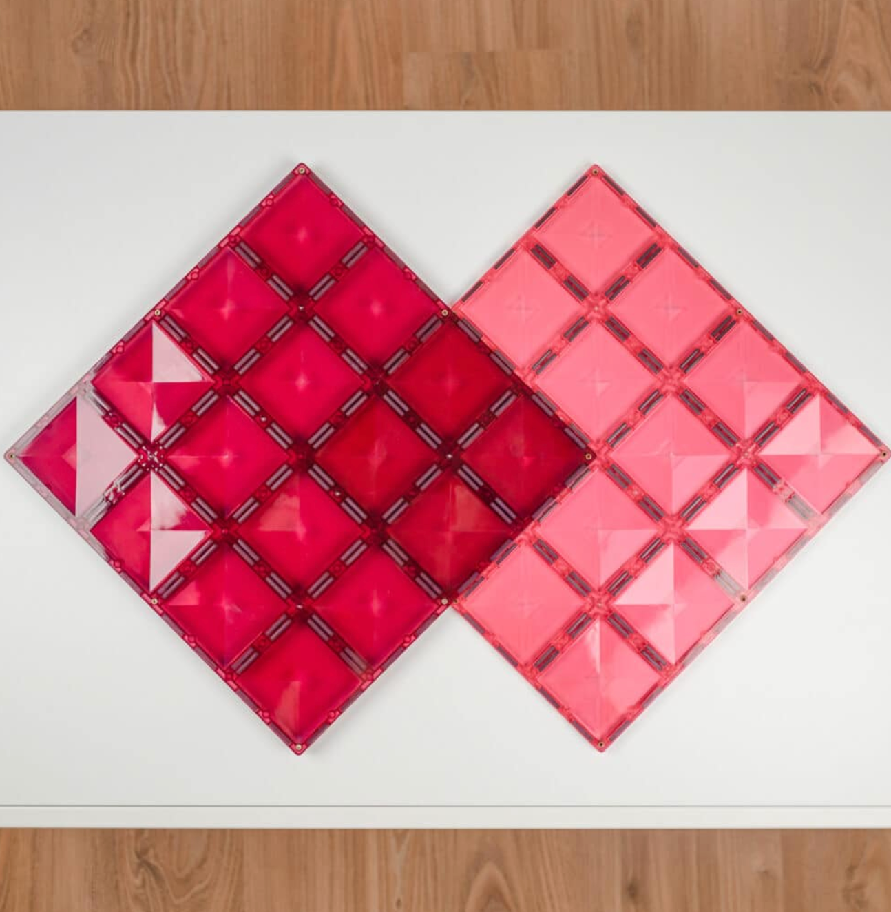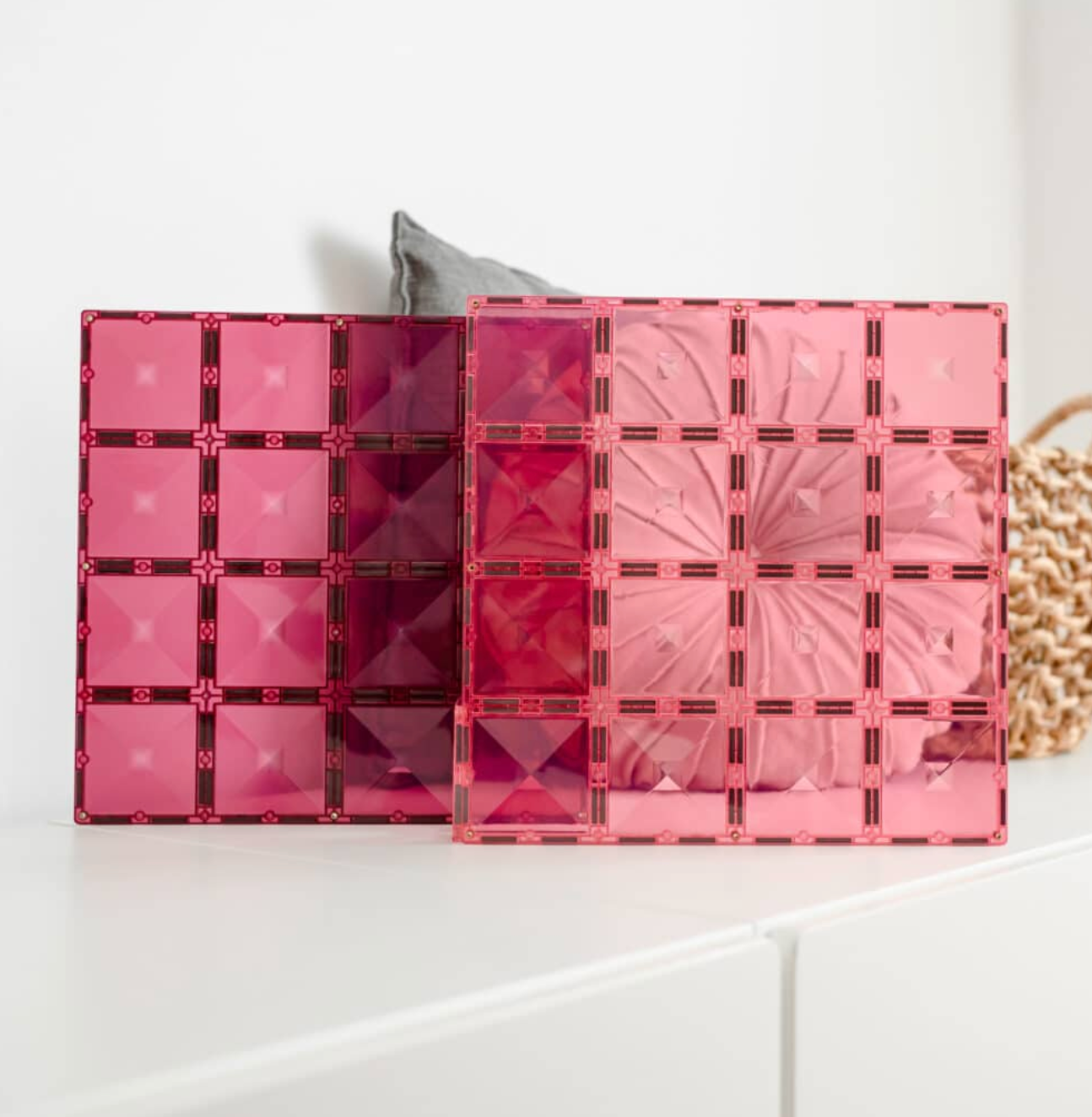 De Pink & Berry Basisplaten van Connetix zijn onmisbaar voor het magnetische tegelspel en dienen als de stabiele ondergrond waarop creatieve ideeën tot leven komen. Dit pakket bestaat uit twee krachtige magnetische bouwplaten van 30 cm x 30 cm, één in roze en één in bessenkleur.