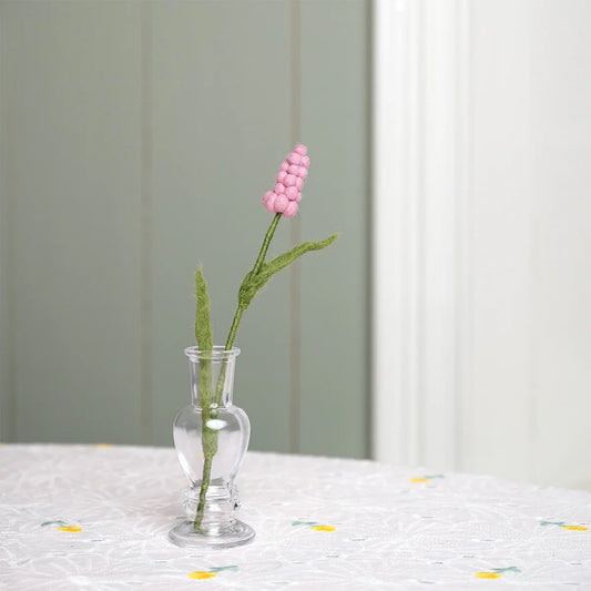Het Druifje Roze is een handgemaakte bloem van delicaat merino-wolvilt in een zachte roze tint.