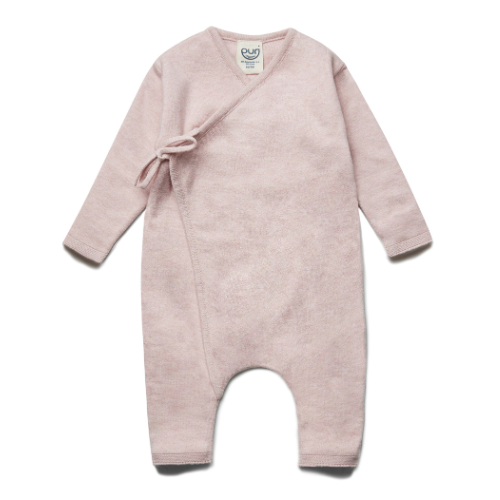 Dit roze overslag boxpakje van katoen/zijde is een heerlijk zacht pakje voor je pasgeboren baby.