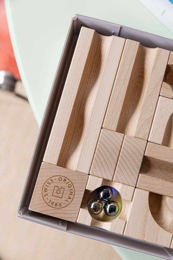 Cuboro is een Zwitsers merk dat bekendstaat om zijn hoogwaardige houten knikkerbanen vol techniek en creativiteit.