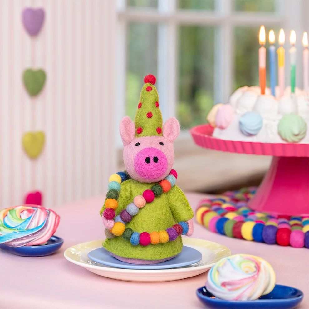 Decoratie feestvarken van wolvilt – Groen