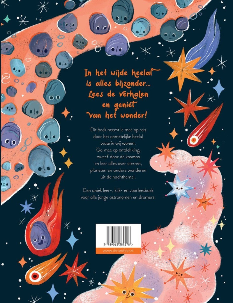 Dit boek neemt je mee op reis door het onmetelijke heelal. Ga mee op ontdekkingsreis, zweef door de kosmos en leer alles over de sterren, planeten en andere wonderen uit de nachthemel.