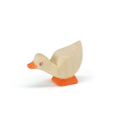 Dit schattige ganzenkuiken van Ostheimer houdt zijn kopje omlaag – misschien op zoek naar een kruimeltje, of gewoon wat verlegen.