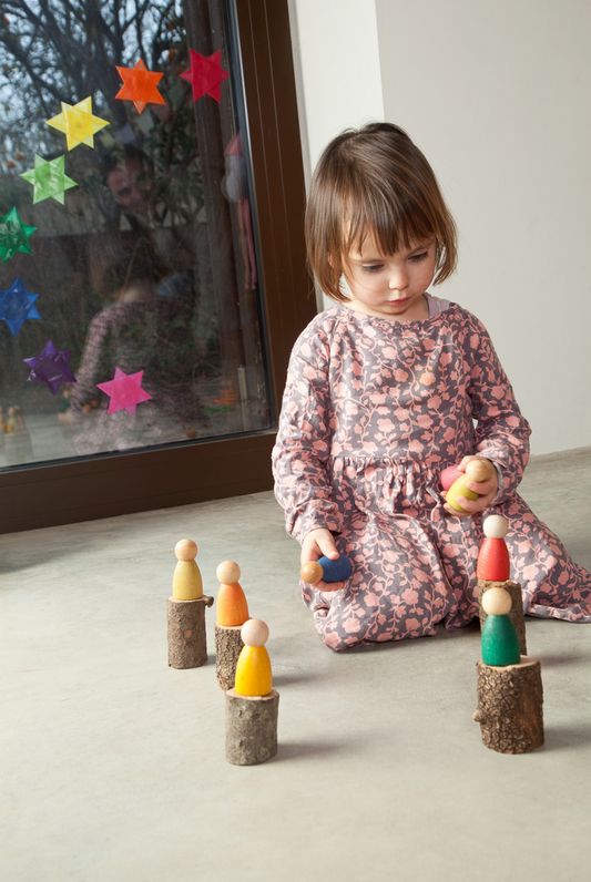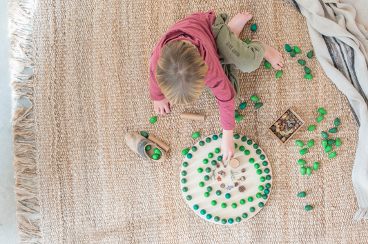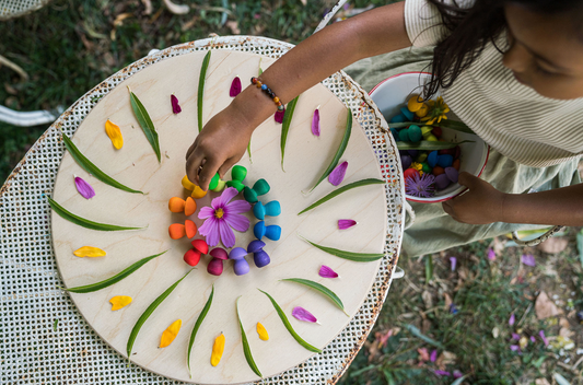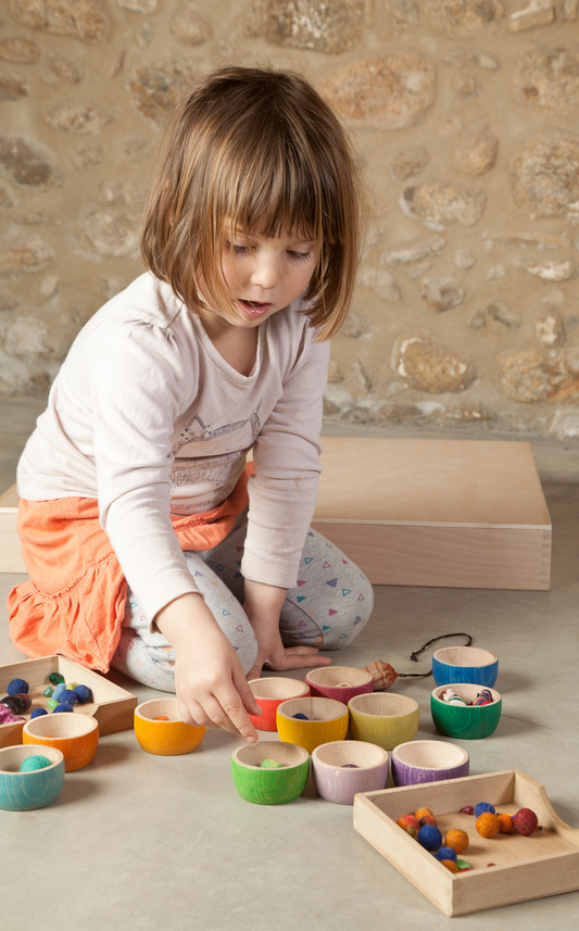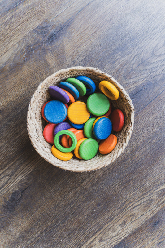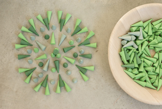 Ontdek eindeloze creativiteit met onze set van 36 eivormige stukjes, beschikbaar in 12 prachtige regenboogkleuren. Deze veelzijdige set is perfect voor het creëren van mandala's en ander open-ended spel.