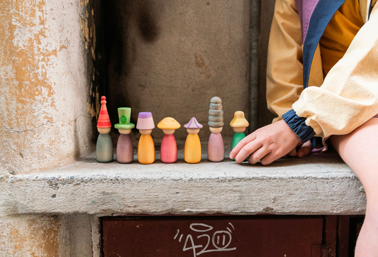 Onze speelstukken moeten de eigen authentieke creativiteit van kinderen uitnodigen en aanmoedigen. Daarom bieden we speelmateriaal zonder instructies of beperkingen aan.