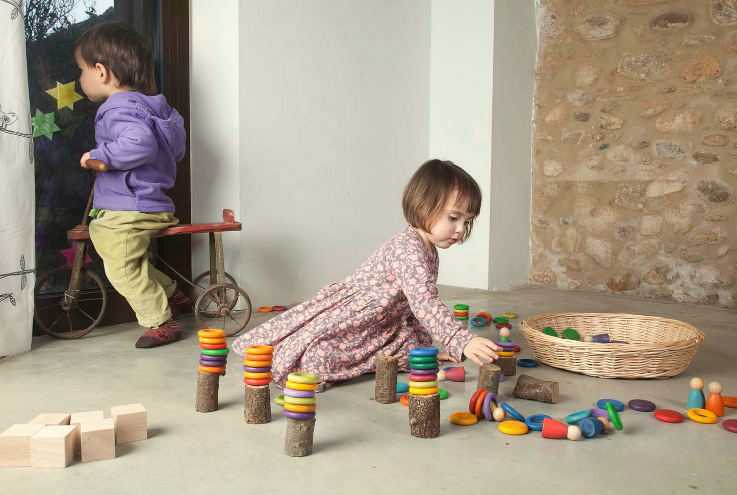 Deze activiteiten verbeteren de hand-oogcoördinatie en motorische vaardigheden. De ringen kunnen worden gebruikt om te rijgen, op te stapelen en verschillende spellen te creëren. De Nins kunnen worden gebruikt als symbolisch spel, om verhalen en kleine werelden te creëren. Naast het oorspronkelijke pedagogische voorstel kan dit materiaal op veel verschillende manieren worden gebruikt, dankzij de veelzijdigheid ervan.