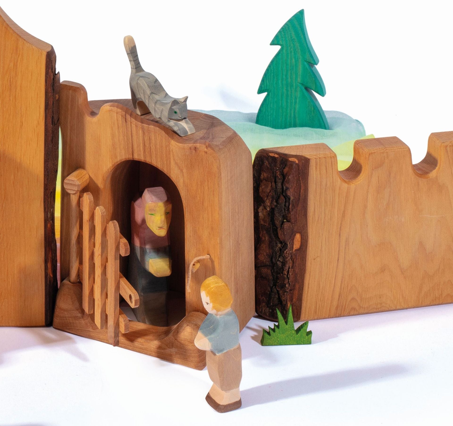 Of je nu Roodkapje, Hans en Grietje of een eigen avontuur verzint – deze houten heks is er klaar voor.