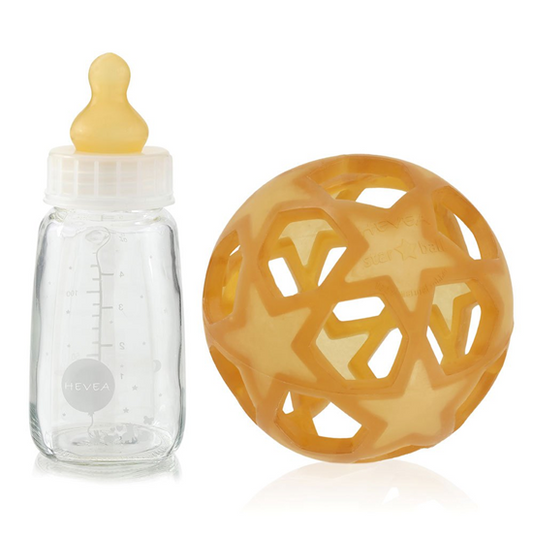 Hevea | Glazen baby zuigfles | 0-3 maanden | 150ml | brede nek