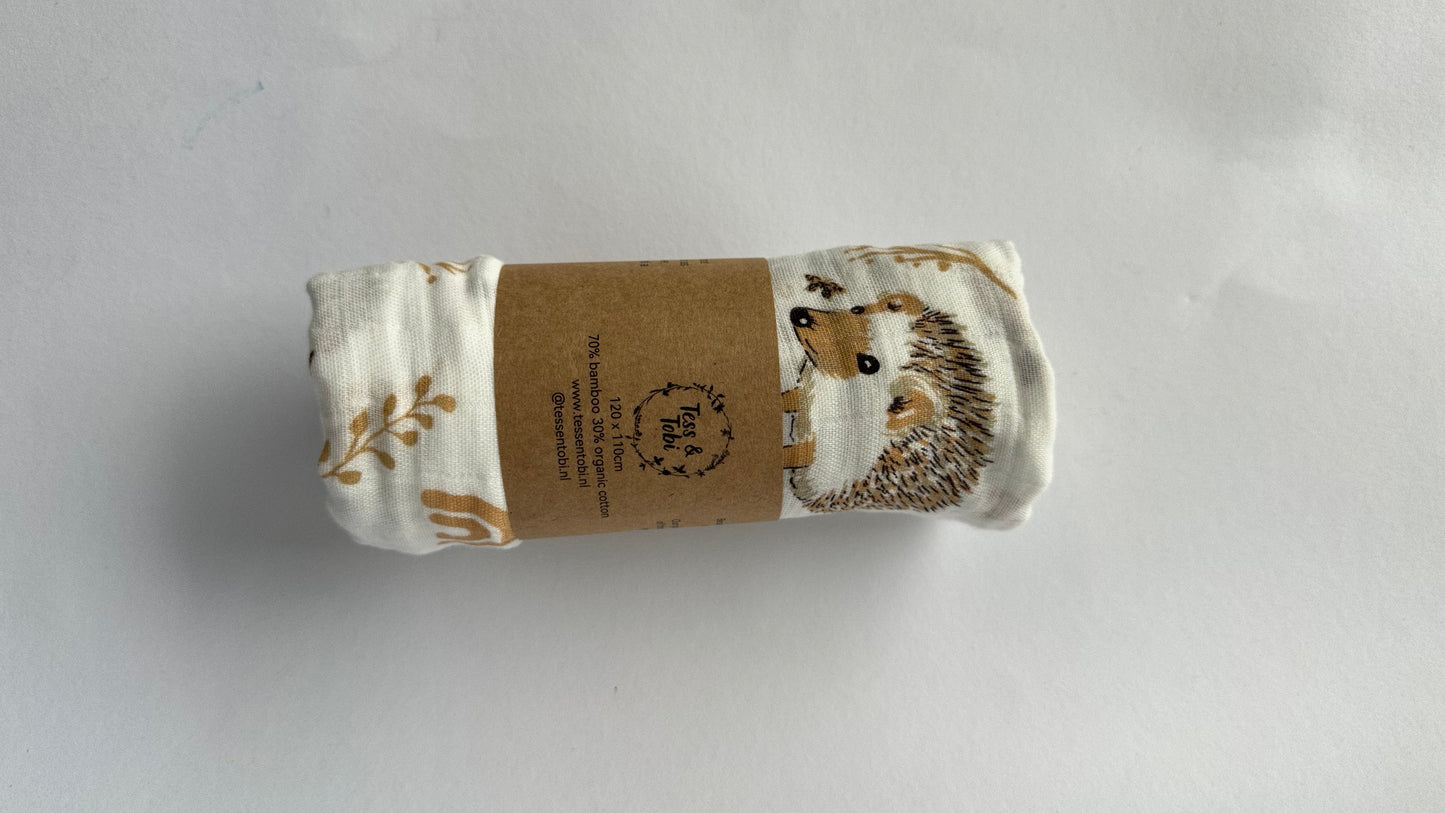 Een zachte, sfeervolle doek met een tijdloos printje – ideaal voor ouders die houden van natuurlijke materialen en een rustige, liefdevolle stijl.