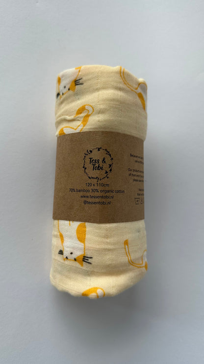 De XL doek met kattenprint is de perfecte combinatie van speels design en praktische zachtheid – een vrolijk accent voor elke babyuitzet.