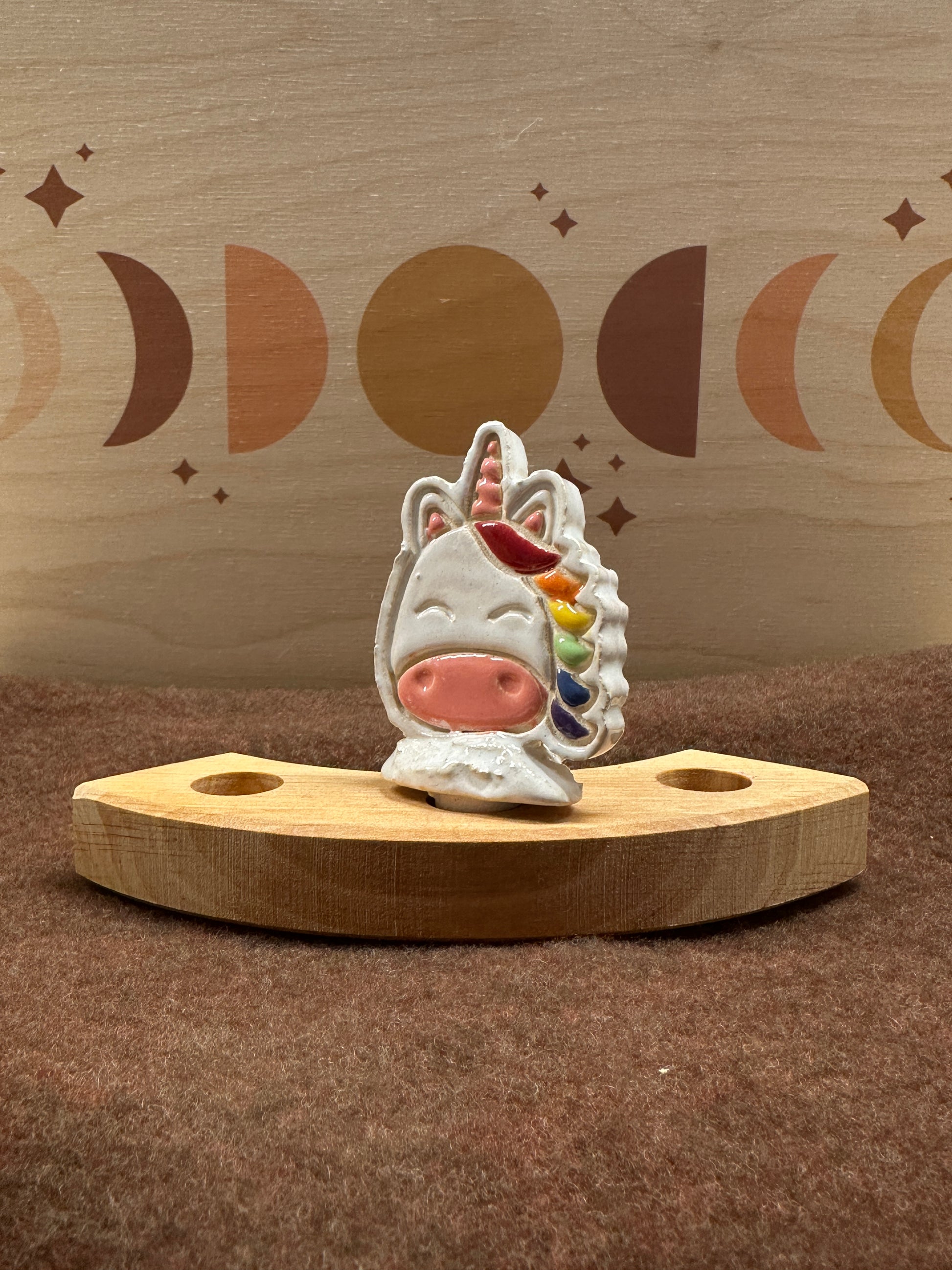 Deze keramische eenhoorn brengt een vleugje magie en verwondering naar je seizoenstafel of jaarring. Met haar zachte kleuren, glanzende glazuur en sierlijke vorm nodigt ze uit tot verhalen over fantasie, moed en dromen. Een betoverende toevoeging voor kinderlijke fantasiewerelden én symbolische seizoenshoekjes.