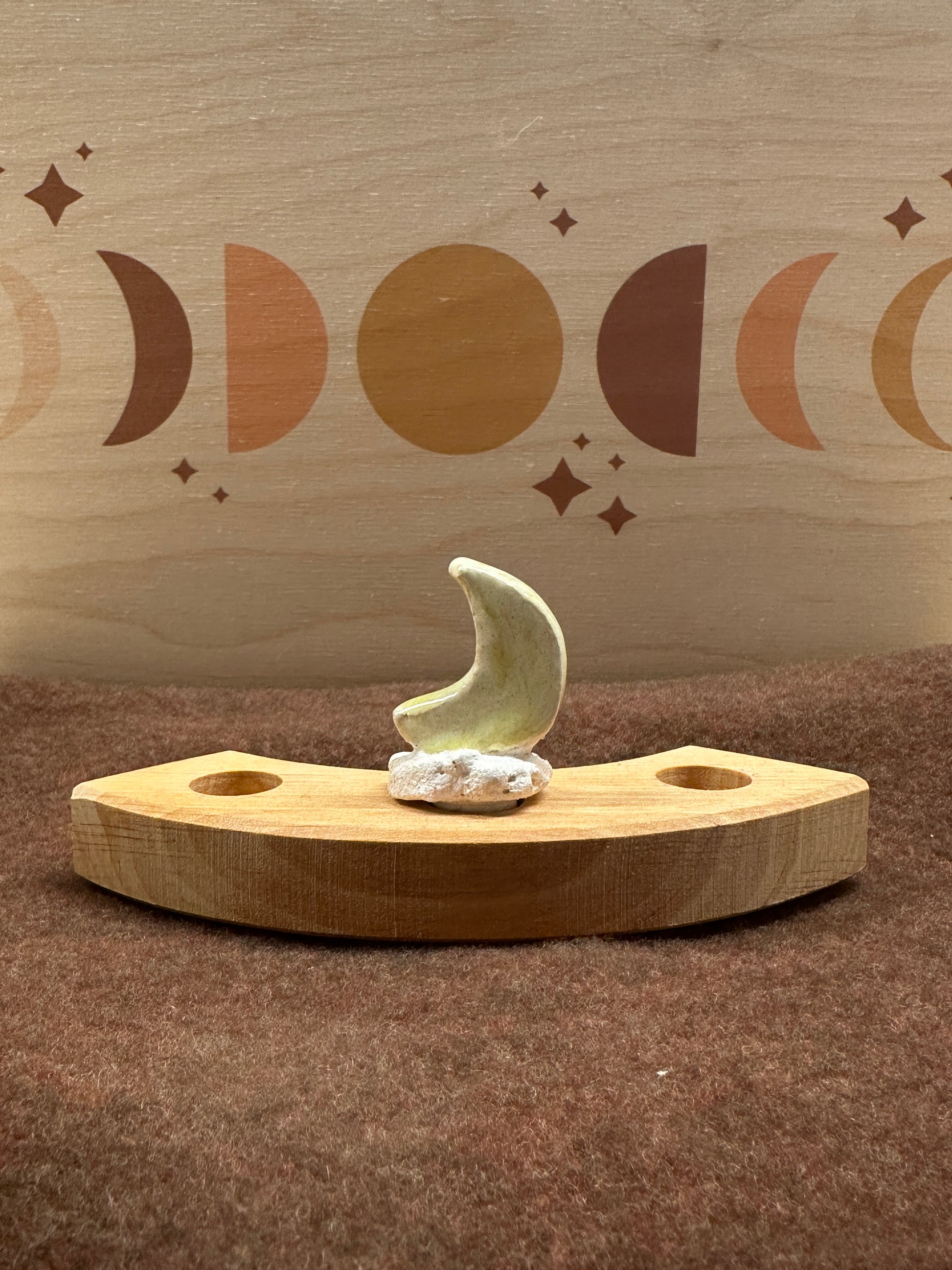 Elke maan wordt met de hand gemaakt door de makers van Lekker Sofisch in Zoetermeer, tijdens dagbesteding waar ambacht en aandacht samenkomen. Het keramieken voetje zorgt voor een stevige plaatsing in een standaard jaarring of op een vlakke ondergrond.