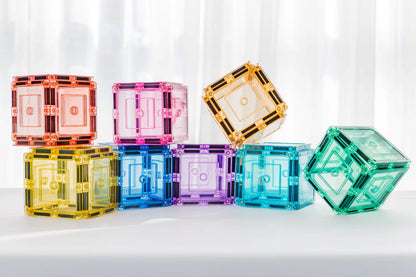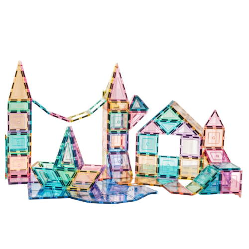 De Magnetische Tegels – Pastel Builders Pack bevatten verschillende vormen die het voor kinderen mogelijk maken om ruimtelijke concepten te begrijpen, balans te ontwikkelen en STEM-vaardigheden te stimuleren.