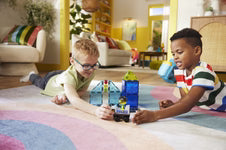 Kinderen kunnen voertuigen bouwen, van een politiewagen tot een skateboard of treinwagon, en hun eigen politie-avonturen creëren.