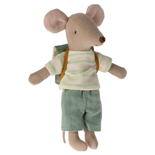Deze charmante Maileg muis draagt zijn rugzakje stevig op zijn rug en is helemaal klaar om te vertrekken.