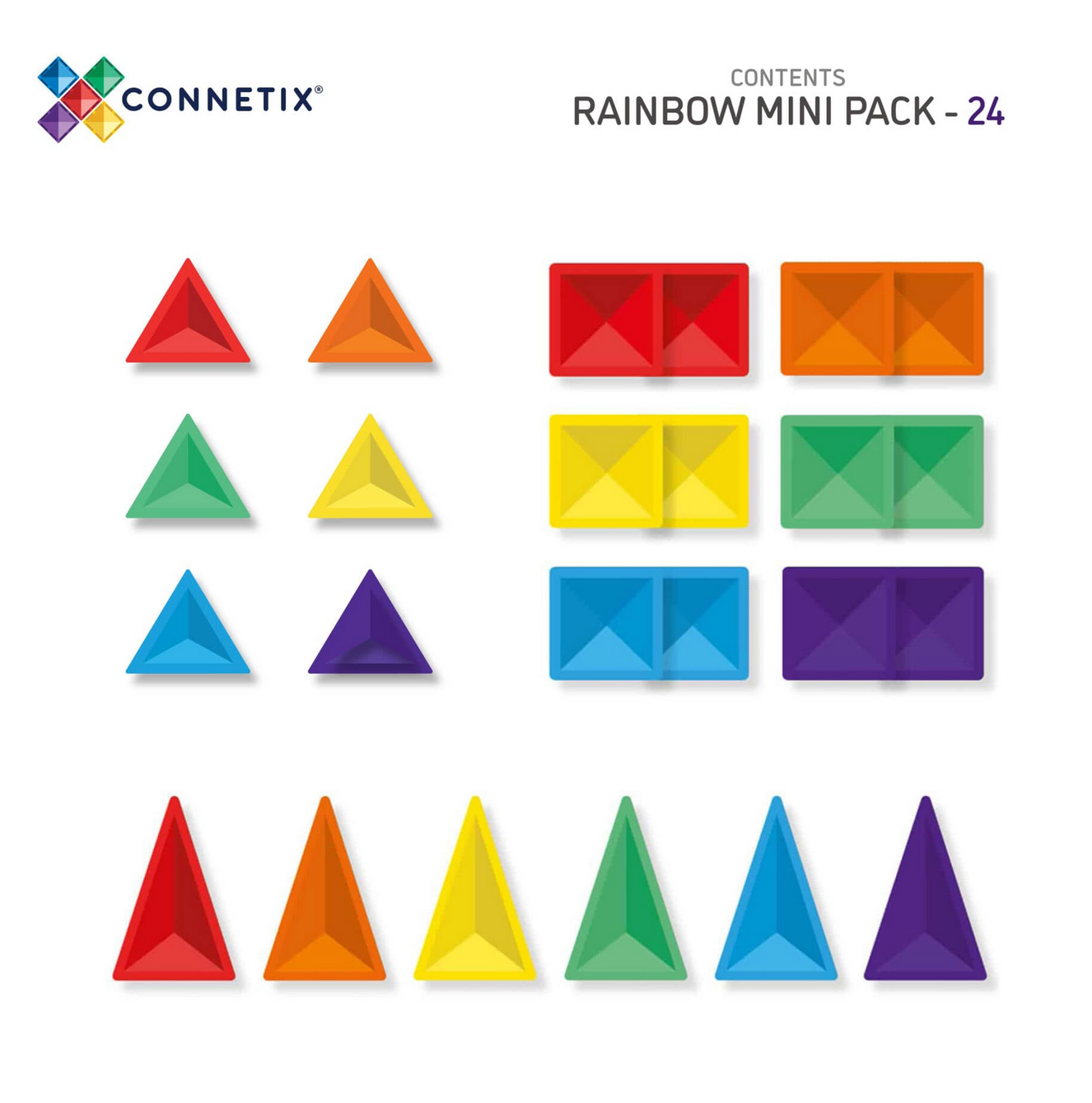 Met de Mini Pack - Regenboog - 24 stuks van Connetix haal je een wereld van plezier en educatie in huis, terwijl je de verbeelding en creativiteit van je kinderen stimuleert.