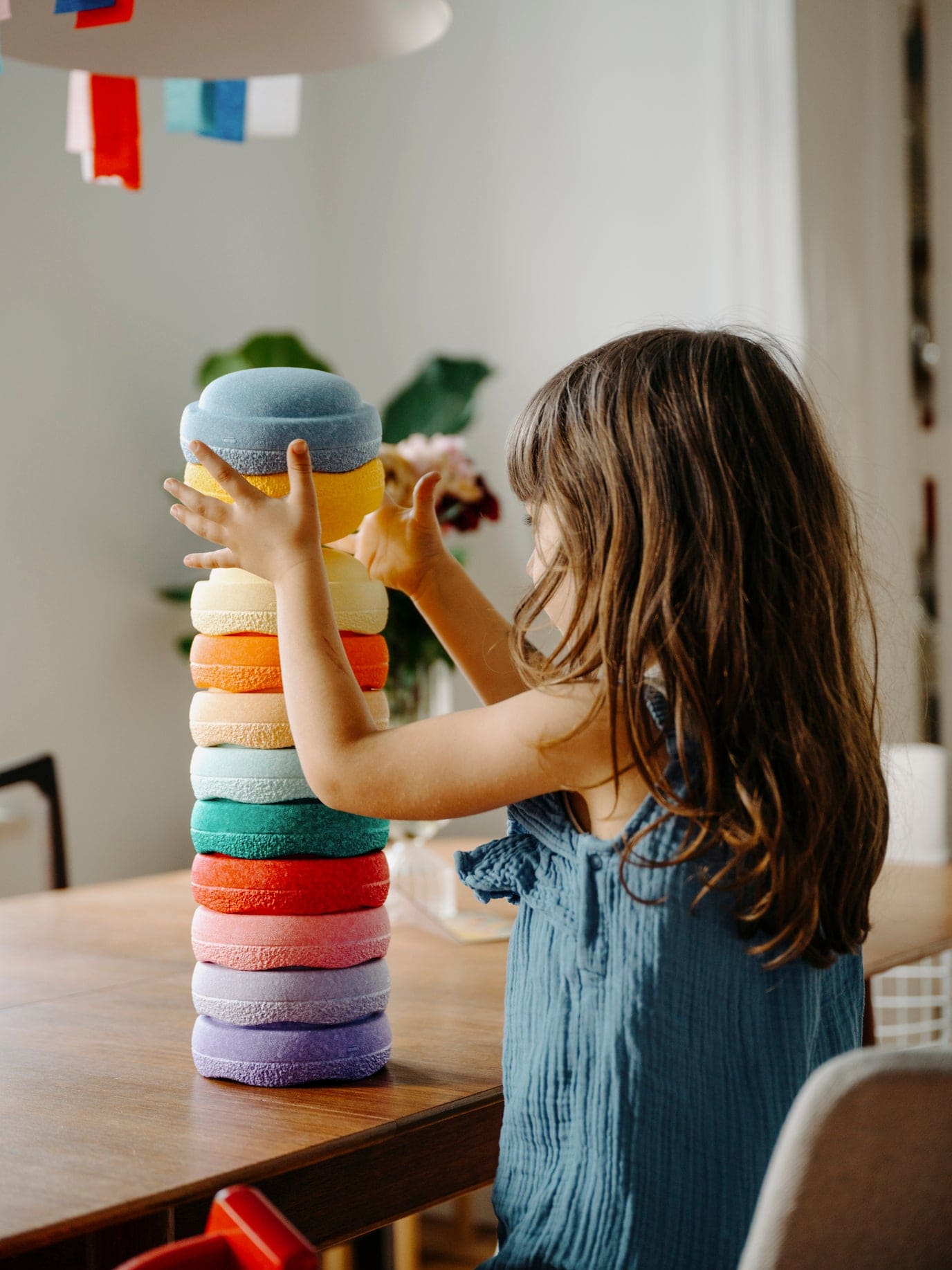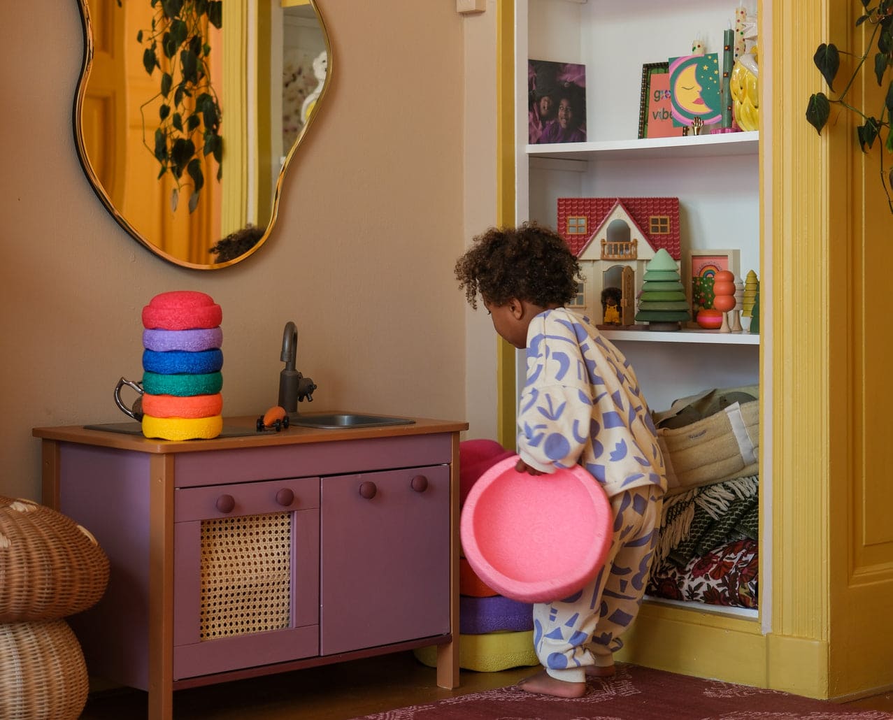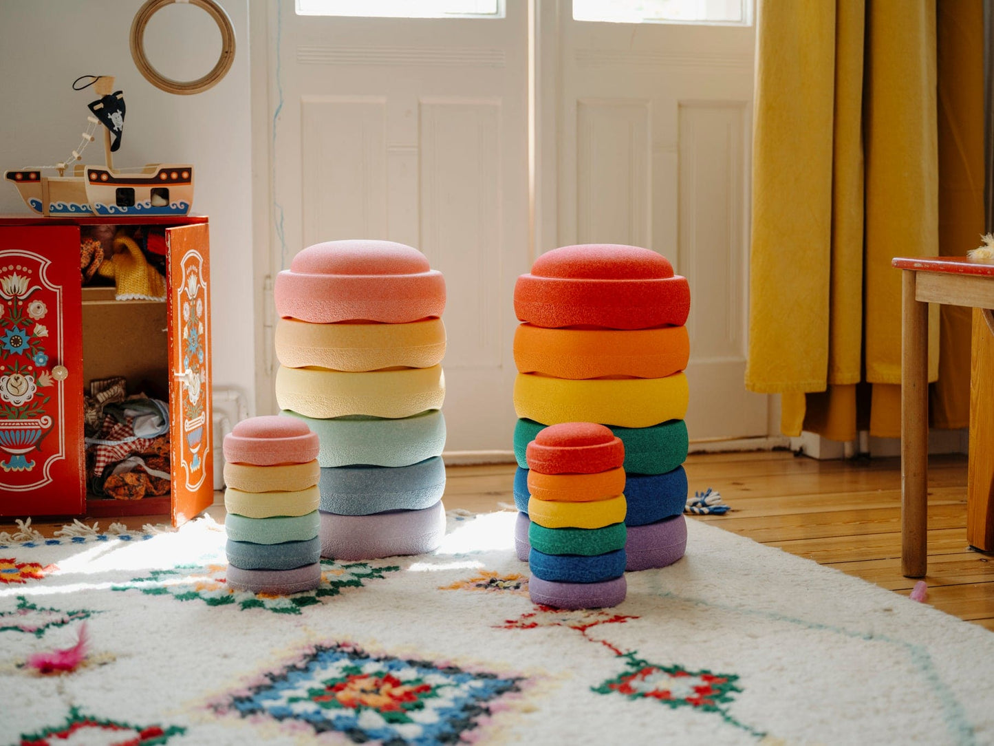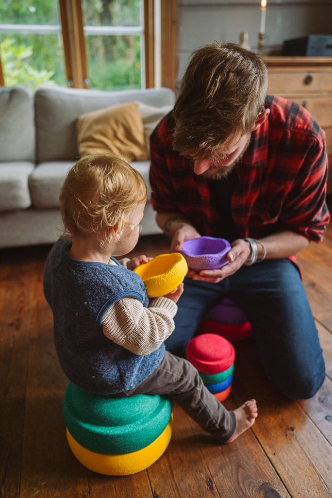 Deze kleurrijke set van 6 mini-stapelstenen stimuleert kinderen om creatief te bewegen, balanceren en bouwen.