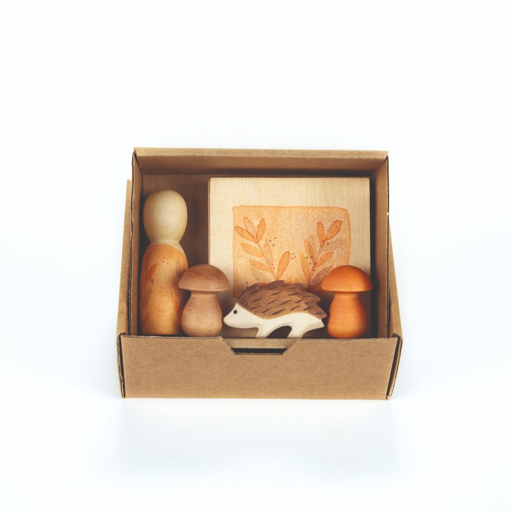 In dit betoverende doosje ontdek je vijf liefdevol gemaakte houten items: een harmonieuze mix van Grapat loose parts en een prachtig Ostheimer diertje.