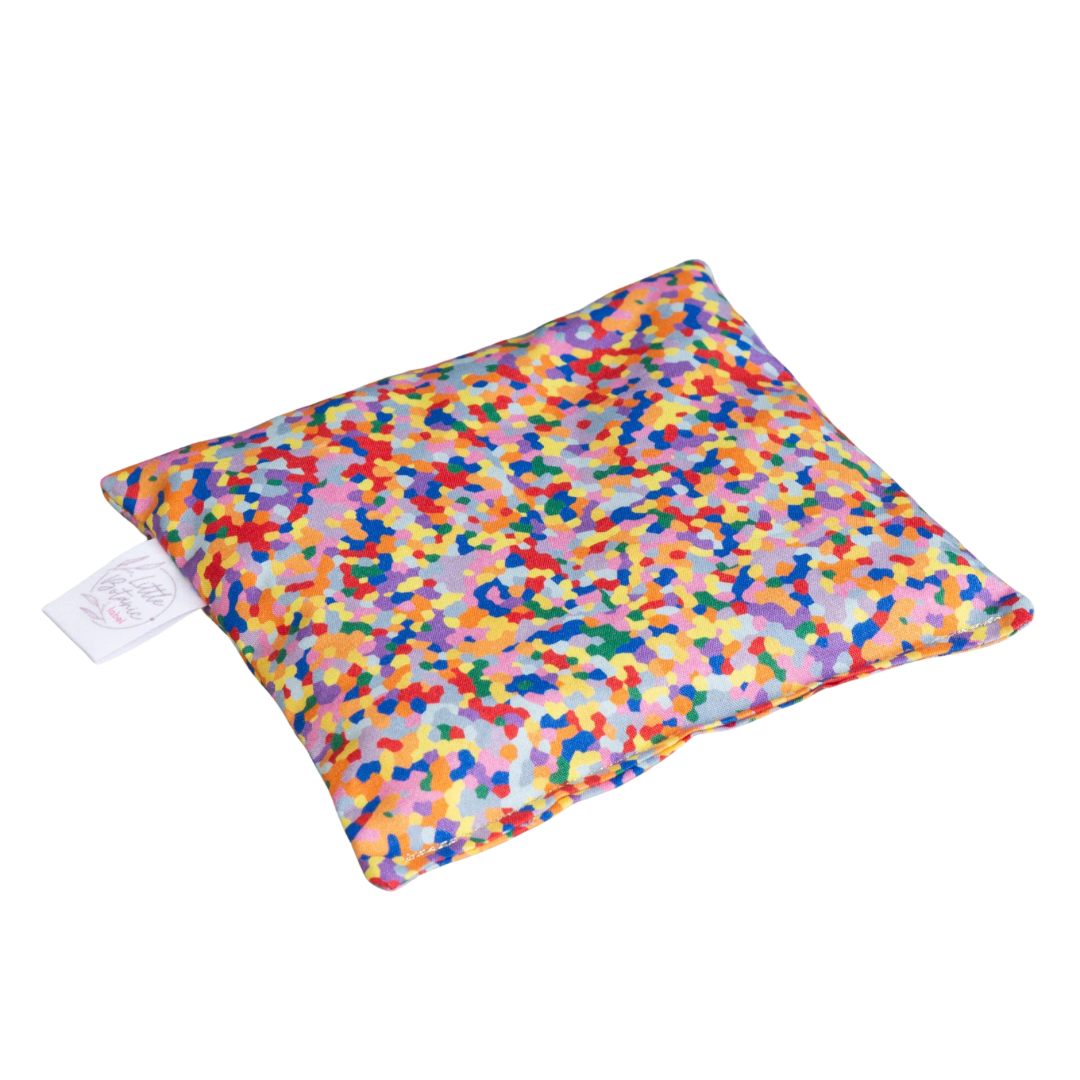 Dit kleurrijke zakje is gevuld met natuurlijke kersen- en druivenpitten, wat zorgt voor een zachte, veilige ervaring.