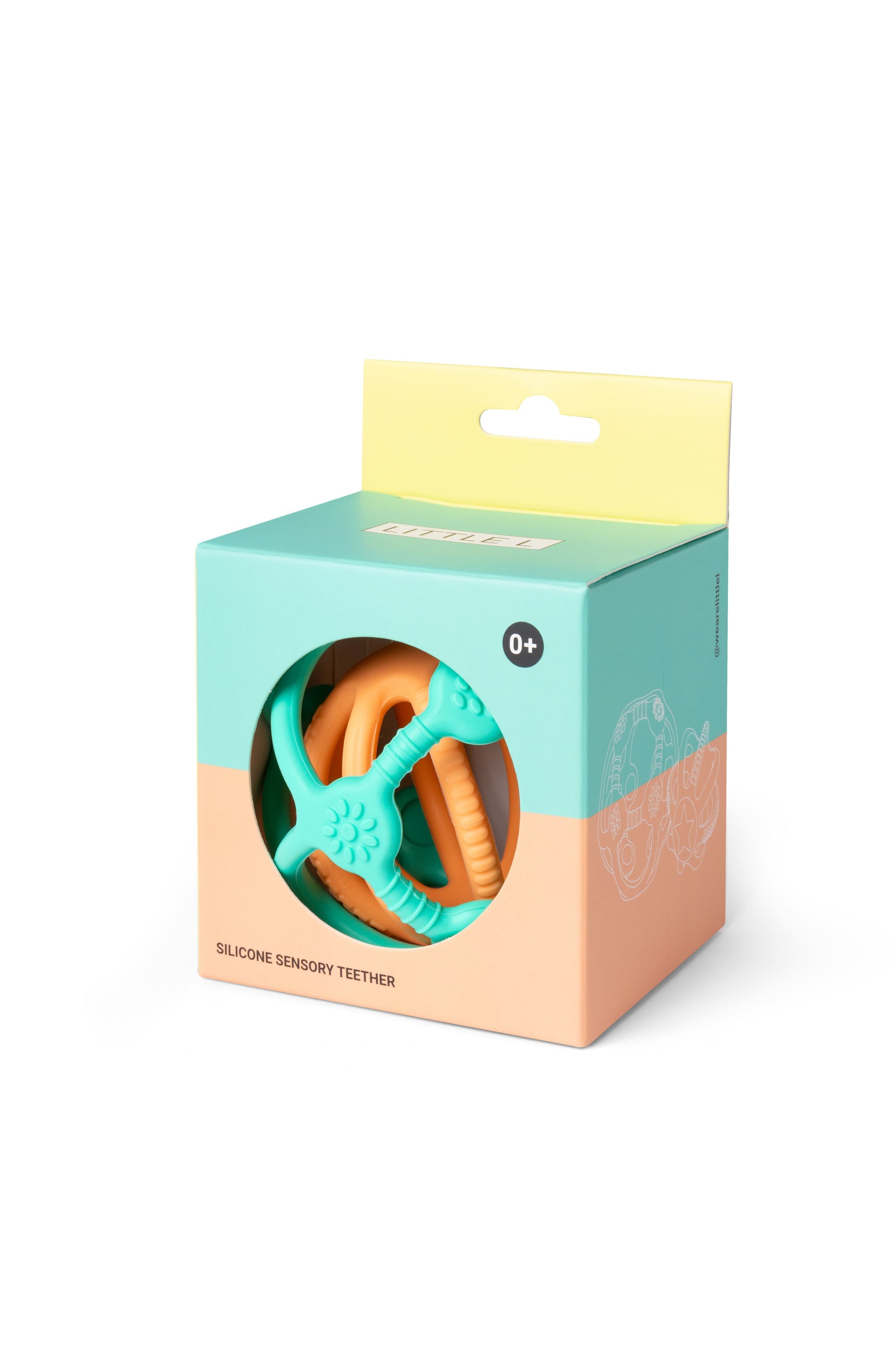De combinatie van oranje en groen zorgt voor visuele variatie en houdt je kleintje nieuwsgierig.