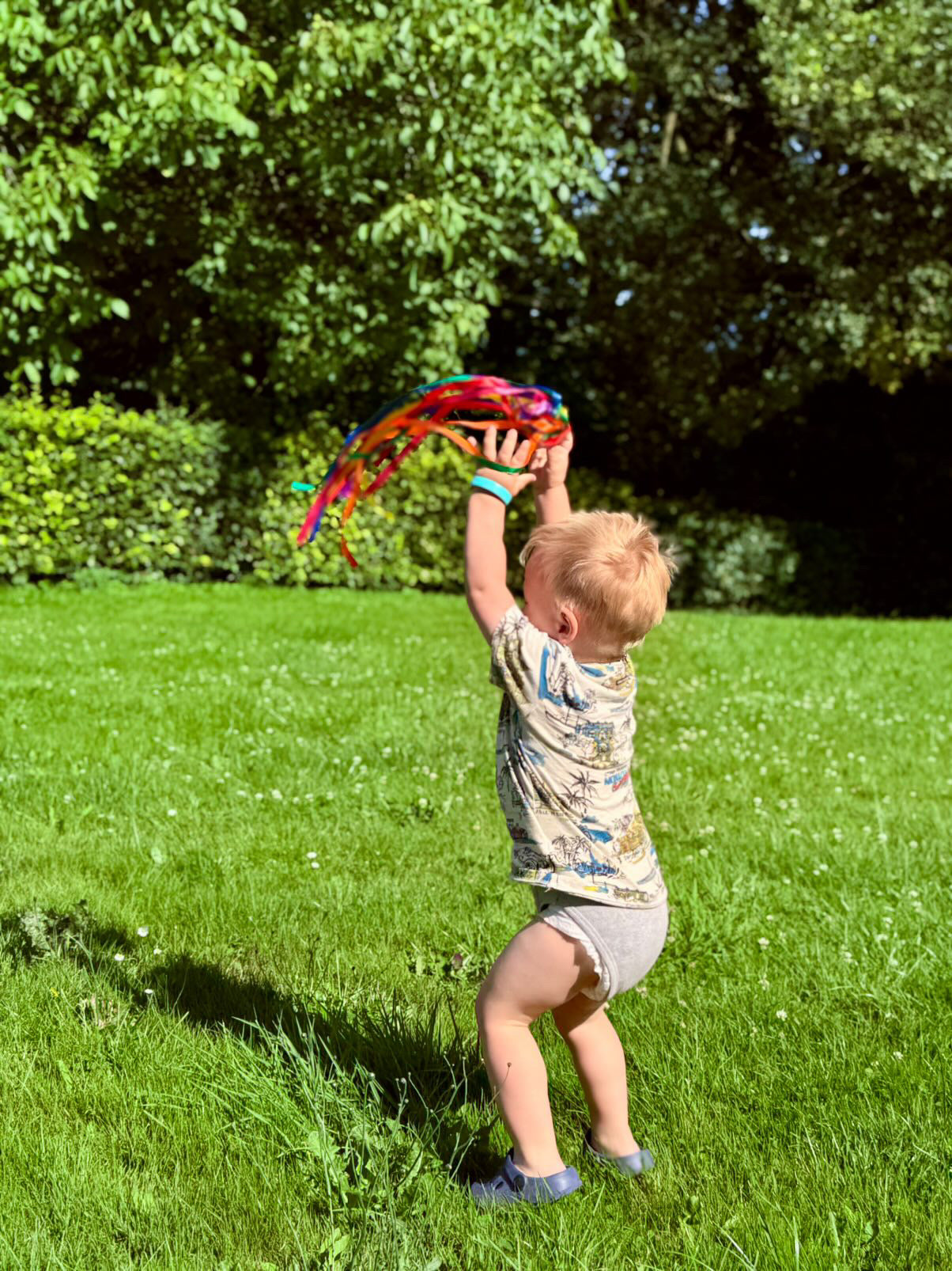 Mijn dochter van 7 maanden vind t heerlijk om te friemelen met de slierten en te zwaaien met de ring. Ze kan er heerlijk lang naar kijken.