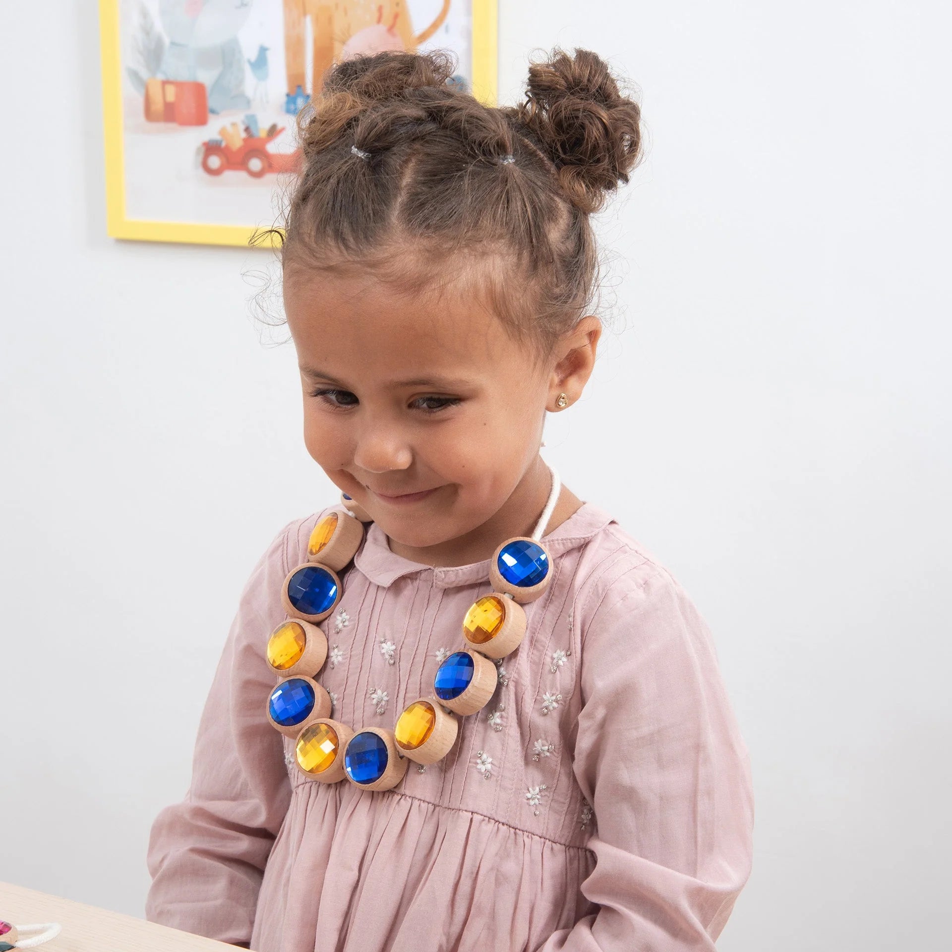Rijg de juwelen op kleur, vorm of volgorde – of maak een prachtige ketting voor een denkbeeldig koninklijk bal.