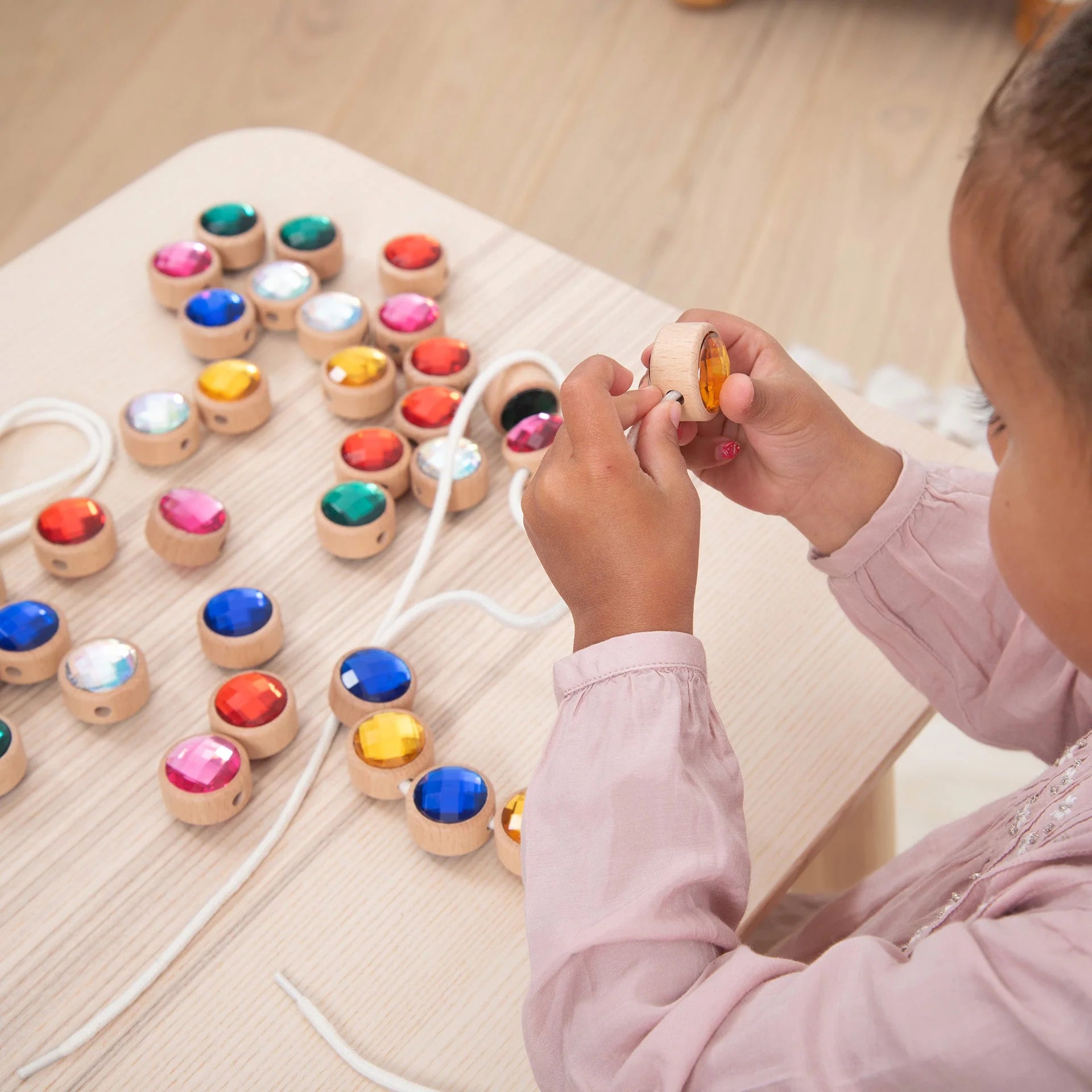 Laat kinderen schitteren met deze vrolijke en duurzame set rijgjuwelen.