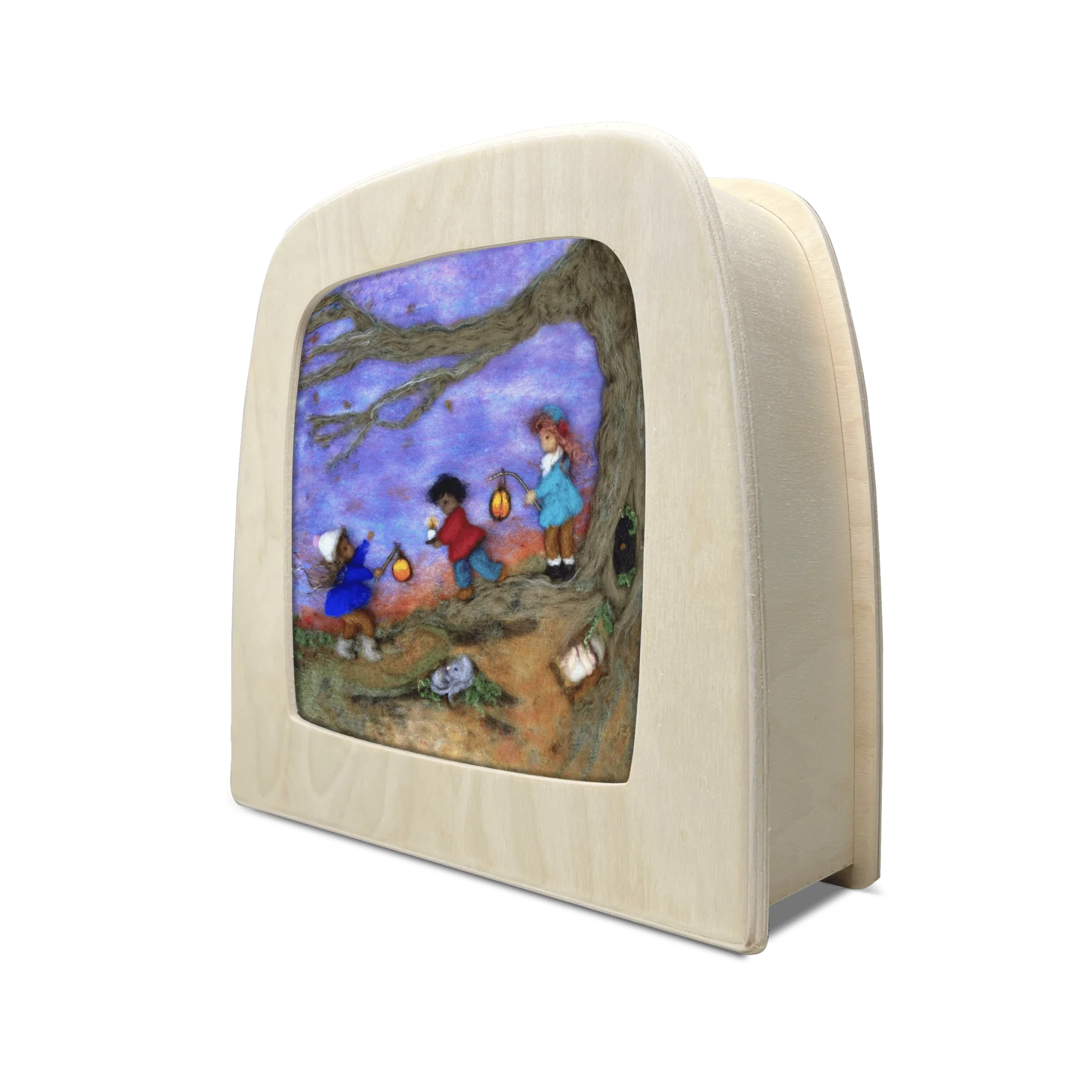 De Toverplaat - Het Wol Feetje - Lantaarnwandeling is ideaal voor op de vensterbank, als tafellampaccent of in een houten frame voor een unieke lichtbeleving.